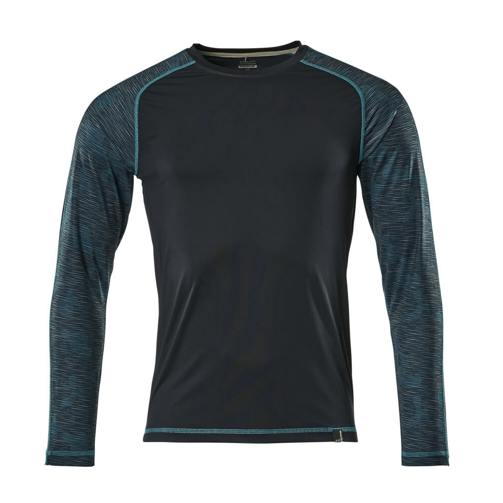 Antibakteriell och fukttransporterande. Torkar snabbt – viktigt för att undvika att kroppen kyls ned. Modern, mer kroppsnära passform med riktigt bra rörelsefrihet. Extra fodring över sömmen i nacken så att sömmen inte stör. Ribbstickning på hals.