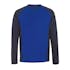 Tvåfärgat. Kammad bomull. Modern passform. Kraftig kvalitet. Förkrympt. Rund hals. Ribbstickning i halsen och vid handlederna. Nackband.