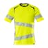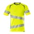 Fluorescerande med sneda tvärgående reflexer. Tvåfärgat. Modern passform. Behaglig bomullsinsida och slitstark polyester med stretch på utsidan. Kvadratiskt jacquardmönster. Reflexen är elastisk. Rund hals. Ribbstickning i halsen. Nackband.