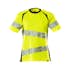 Lady passform. Fluorescerande med sneda tvärgående reflexer. Tvåfärgat. Modern passform. Behaglig bomullsinsida och slitstark polyester med stretch på utsidan. Kvadratiskt jacquardmönster. Reflexen är elastisk. Rund hals. Ribbstickning i halsen. Nackband.
