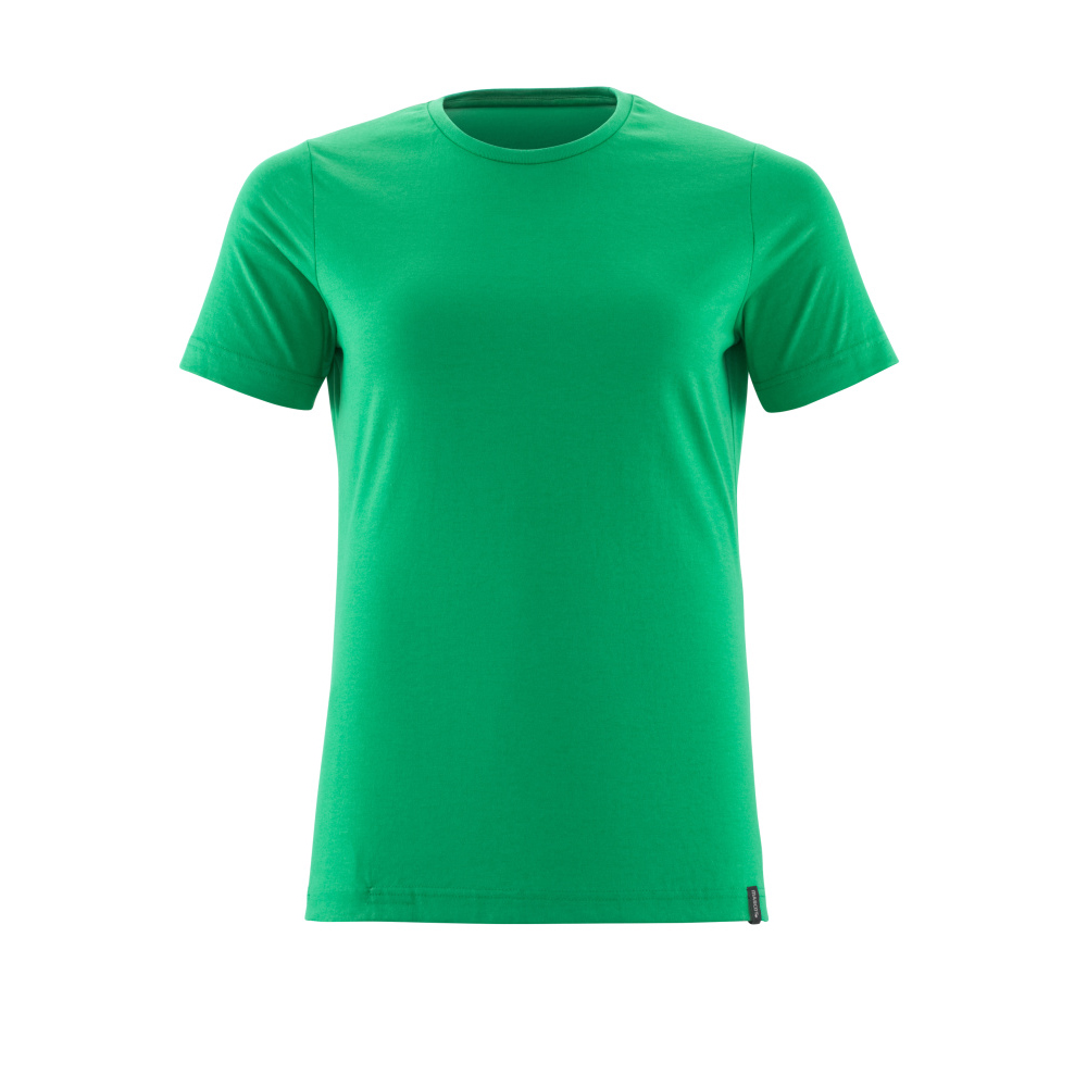 Lady passform. Kraftig kvalitet. Kammad bomull. Förkrympt. Rund hals. Ribbstickning i halsen. Nackband. Förberedd för insättning av namnlapp samt HF- och UHF-chip. Lämplig för industritvätt.