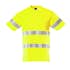 Fluorescerande och med reflexer. Enfärgade. Modern passform. Behaglig bomullsinsida och slitstark polyester på utsidan. Reflexen är elastisk. V-hals. Ribbstickning i halsen. Nackband. Nät med ventilation under ärmarna.