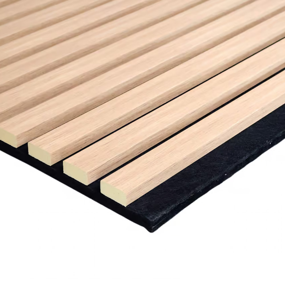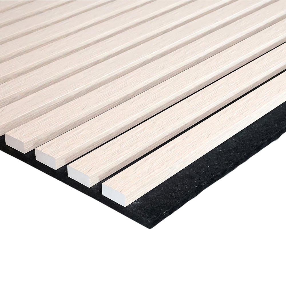 Kollektionen “Spa” har en stabil filtbaksida och 13 ribbor med trädekor på alla tre sidor. Akustikpanelen fungerar precis som våra andra akustikpaneler både för tak- och väggbeklädnad och är enkla att montera med skruvar, spik eller lim. Akustikpanelerna kan kapas till valfri storlek eller måttbeställas. Du behöver inte spackla, måla eller tapetsera innan montering. Det går utmärkt att sätta panelerna direkt på gipsskivor eller reglar. I våtutrymmen bör de limmas (ej skruvas) för att inte göra hål i tätskikt