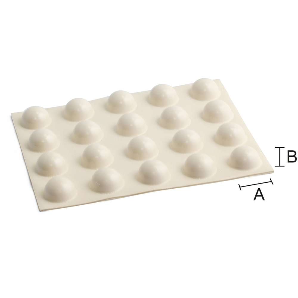Buffert av plast. Självhäftande. 20 st per karta. Fästs enkelt upp på väggar du vill skydda mot slitage av handtaget utan behov av att skruva i väggen!