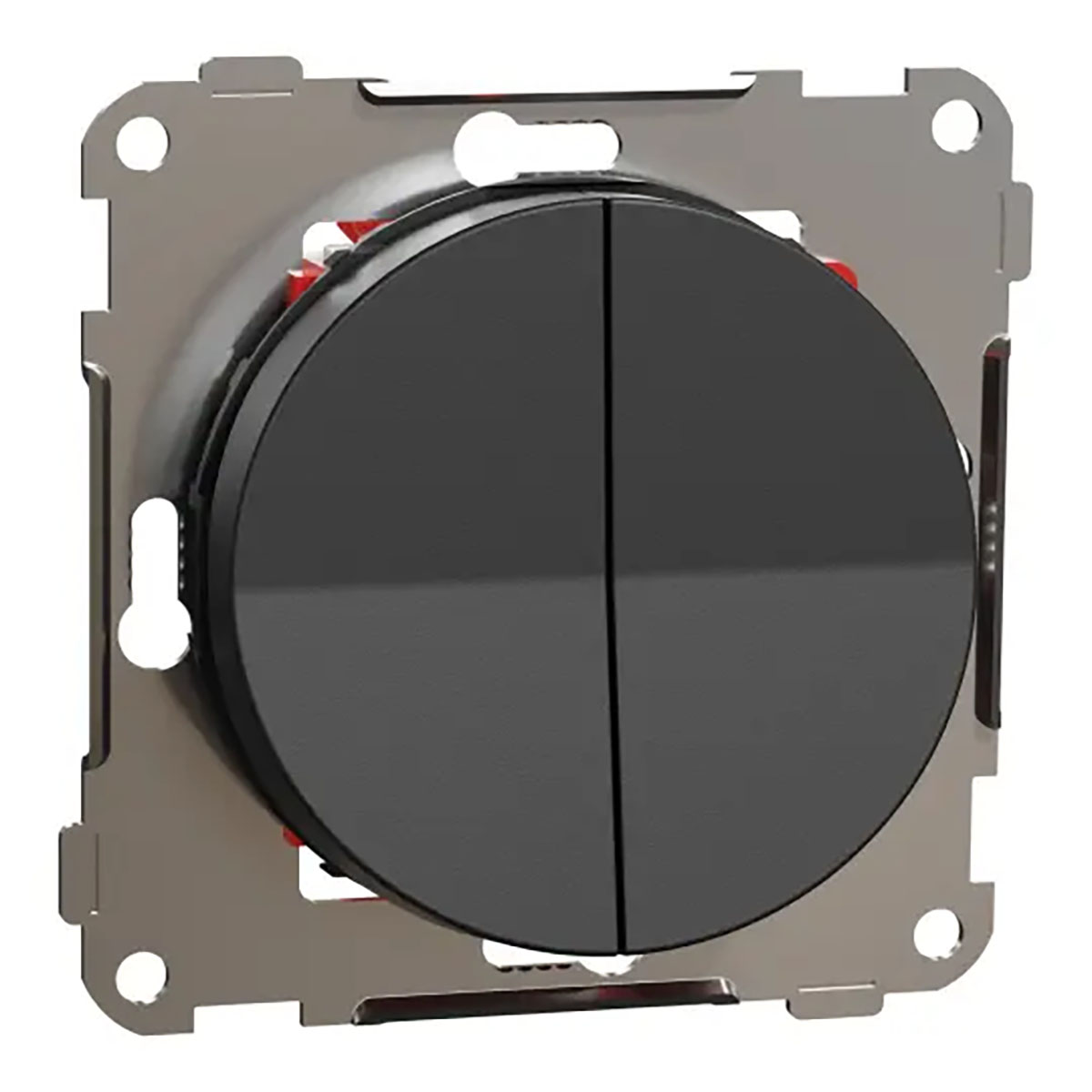 Strömställare, Elko, One, infälld, kron, 16A, 10AX, 250V, IP21, snabbanslutning. Klo-kit 1840594 kan användas för ytterligare fixering i dosa utan skruv. Den är försedd med snabbkoppling med trådinföring från baksidan. Driftspänning 250VAC, märkström 16A. Monteras i en lämplig 1 till 5-facks ram i en infälld apparatdosa cc 60mm dosa eller 1 till 3-fack hög utanpåliggande ram för utanpåliggande montering, samt i hörnbox.