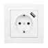 Infällt 1-vägs vägguttag med USB-uttag. Skruvanslutning. Uttaget passar ej med förhöjningsramar p.g.a djupet.