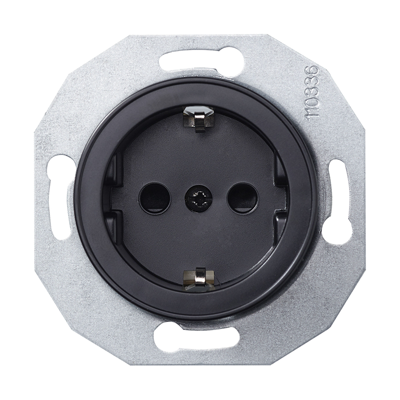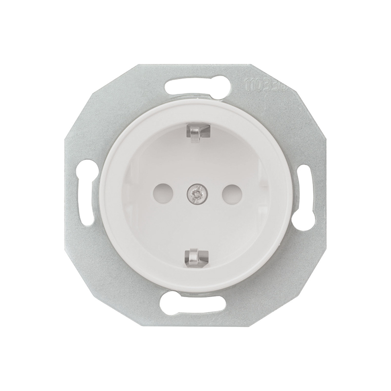 Renova Vägguttag 1-vägs jordat 16A 230V för infällt IP20 montage i apparatdosa inkl fästklor. För utanpåliggande montage används dosa E18 311 96/97. Snabbanslutning, kompletteras med valfri Renova ram.