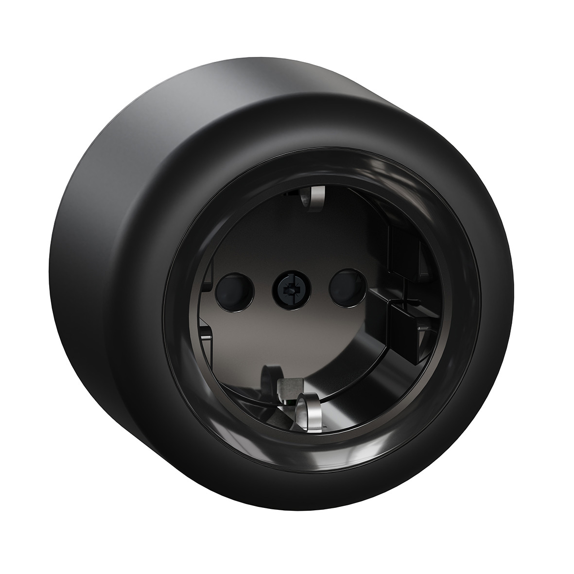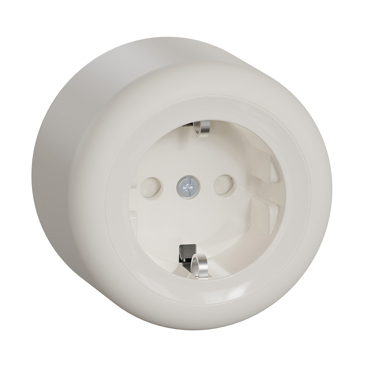 Vägguttag 1-vägs från Schneider Electrics för utanpåliggande installation med integrerad bottenplatta. 16AX, 250V, jordat, petskyddat. Snabbanslutning. Ingångar för kablar från baksidan genom utbrytningar i bottenplattan eller från alla sidor med hjälp av utklipp i locket. Produkten är IP20 (även med kåpan borttagen). IP21 då kabeln förs in underifrån.