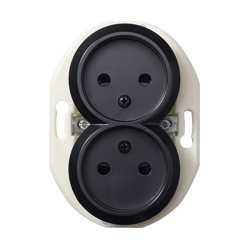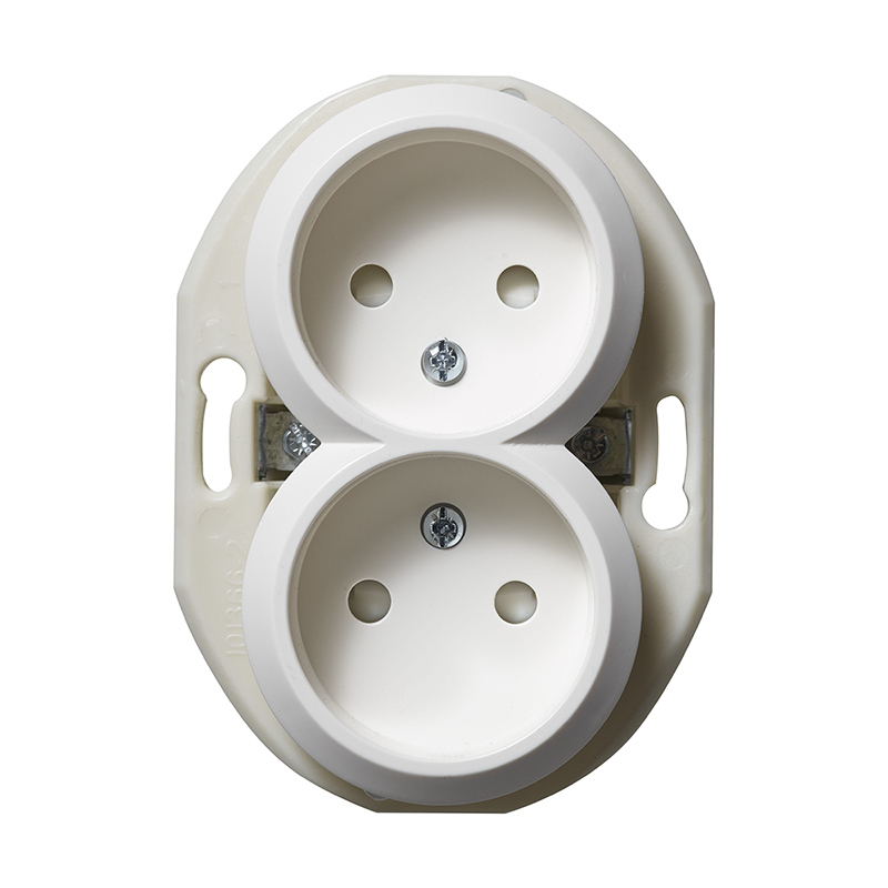 Renova Vägguttag 2-vägs ojordat 16A 230V för infällt montage i apparatdosa inkl fästklor. För utanpåliggande montage används dosa E18 311 98/99. Snabbanslutning, kompletteras med valfri Renova ram.