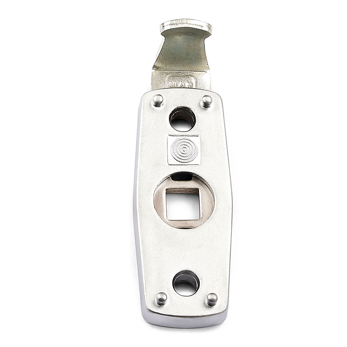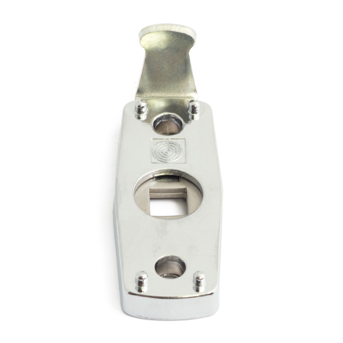 Låsspärr av zink till fönsterhandtag. Manuell låsning. Ej barnskyddande.