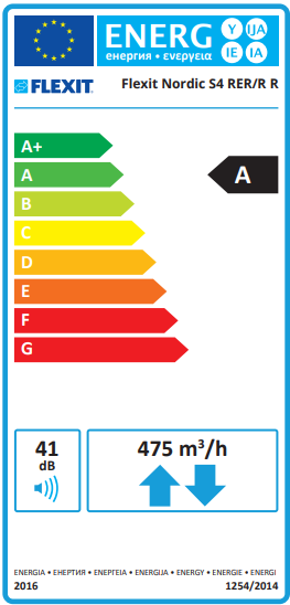 Flexit Nordic S4 ventilationsaggregat är utvecklat för att vara energieffektiv i nordiskt klimat. Passar bra i lägenheter, småhus, villor och små kommersiella byggnader och bidrar till ett mycket bra inomhusklimat. Enkel tillkopplingsmöjlighet för spiskåpa via bypasslösning. Ventilationsaggregatet har högeffektiv roterande värmeåtervinnare, med temperaturverkningsgrad upp till 85%, och fläktar med låg energiförbrukning. Alla Nordicaggregat styrs som standard via appen Flexit GO och kan kompletteras med olika tillbehör, trådlösa eller kabelbundna, t.ex. styrpanel, fuktgivare, tryckgivare för köksfläkt, CO2-givare etc. Automatiken är förberedd för lokal behovsstyrning. Kylåtervinning är en standardfunktion i Nordicserien. Med Flexit GO finns också möjlighet att aktivera funktionen fri-/nattkyla. Vid hög frånluftsfuktighet kan avfrostningsfunktionen i Flexit GO aktiveras, för att säkra drift i kallt klimat. Kan placeras upprätt på vägg, på golv eller hängande i tak, i både varma och kalla utrymmen.