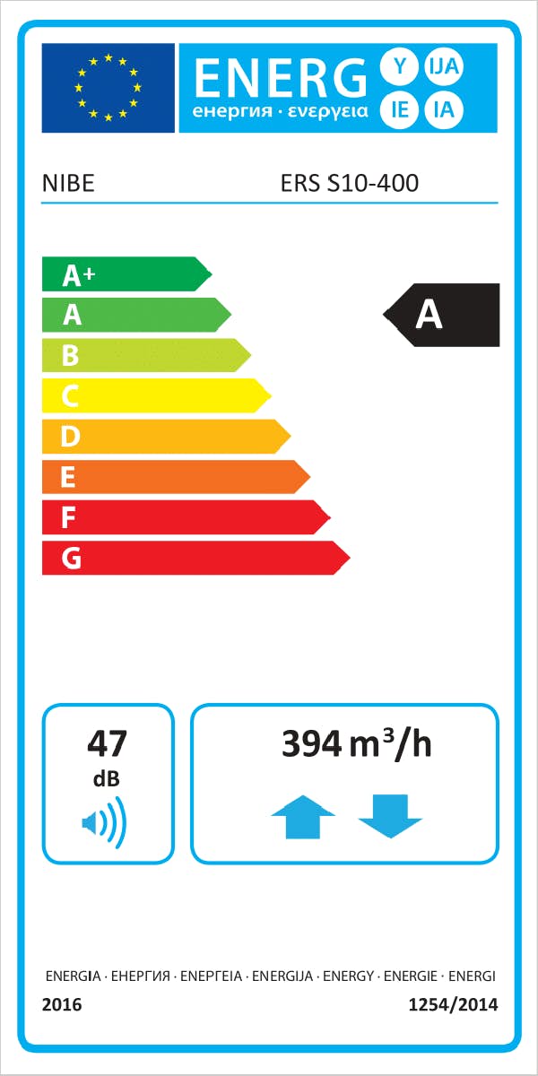 NIBE ERS S10 är en ventilationsvärmeväxlare med hög temperaturverkningsgrad upp till 90 % och låg energiförbrukning. Ventilationsvärmeväxlaren används i hus med en yta på upp till ca 250 m2.