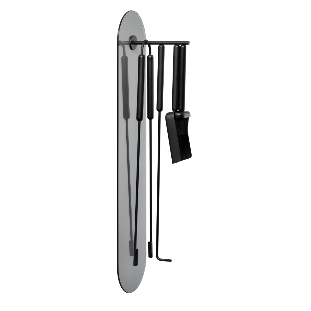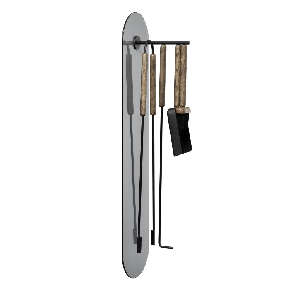 Handtagen av ek innehåller en magnet som håller verktygen säkert på det belagda stativet. ASHI-sortimentet erbjuder olika varianter för en behagligt varm eldstadsatmosfär.