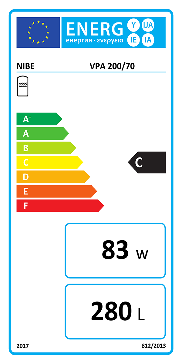 Nibe VPA klarar en temperatur på upp till 90 °C och är försedd med uttag för elpatron samt givarrör. Den miljövänliga och effektiva isoleringen gör att tanken har en mycket låg energiförlust. Isoleringen är demonterbar för att underlätta vid installation.