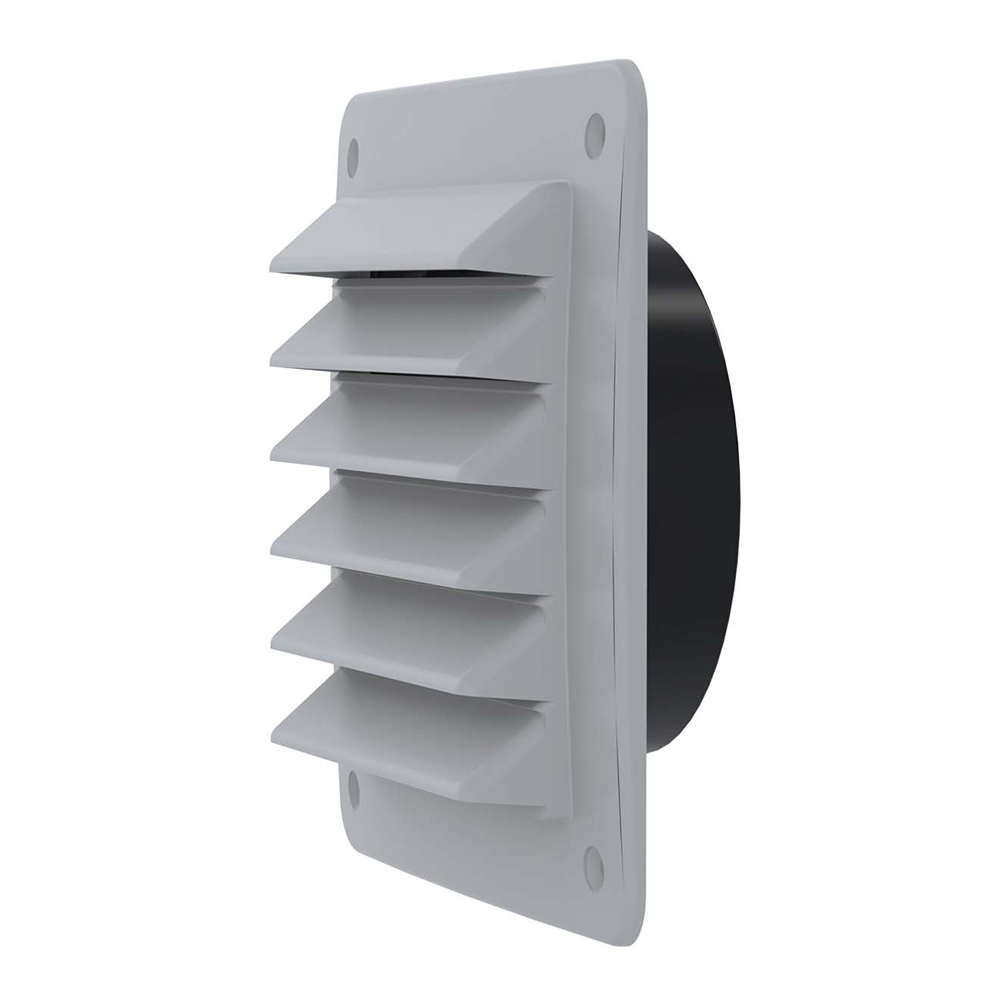 Kvadratiskt galler med anslutningsstos Ø98x30, av UV-beständig konstruktionsplast 150x150 mm. Anpassat för ventiler och avsett att användas på utvändig vägg. Skruvhålens hålbild passar Täckplatta 18 och 20. Försett med väggenomföringsstos och insektsraster 150. Gallret tillverkas i PP (polypropen) med låg miljöpåverkan.
