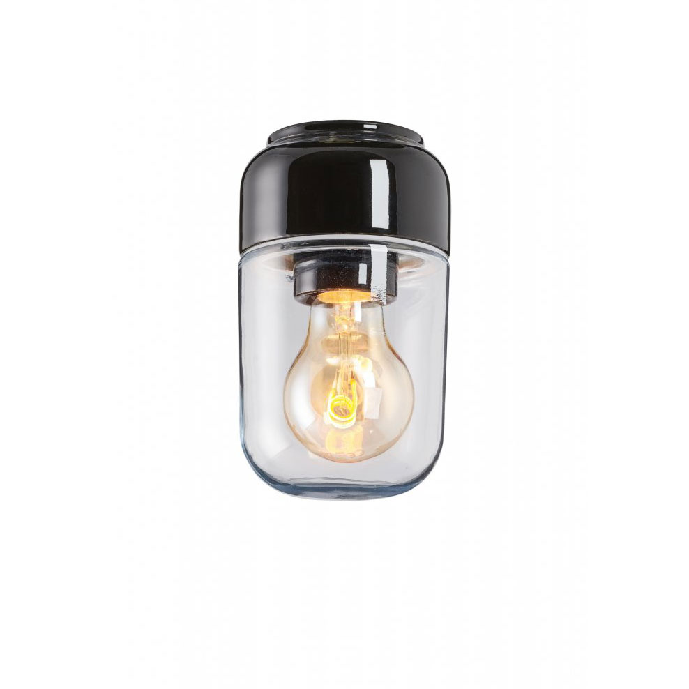 Denna varianten är IP44-klassad och anpassad för våtrum, då den är skyddad mot både fukt, ånga och vattenstänk. Den har en skyddande skärm i klarglas som dels bidrar till lampans eleganta och luftiga look, men också till att det blir en spännande och behaglig ljusspridning. Använd en dekorativ LED-lampa i armaturen för finast resultat.