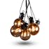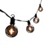 Stilfull partyslinga med klotformade kupor i grå rökfärg. Slingan har 10 LED som går att byta ut vid behov, 24V transformator med inbyggd dimmer. Längd 450 cm och anslutningskabeln är 100 m. Godkänd för utomhusbruk.