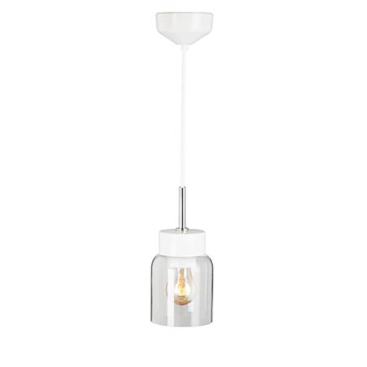 Tova har en dekorativ rak kupa i klarglas som både omger ljuskällan och framhäver den på ett mycket fint vis. Lampans sockel matchar snyggt med både textilkabeln och takplattan. Ett förslag är att placera fler lampor av samma sort i en rad eller i ett kluster, för att belysa en större yta och ge ett smyckande intryck till rummet. Det är även snyggt att kombinera denna varianten med andra lampor i serien Smycka.