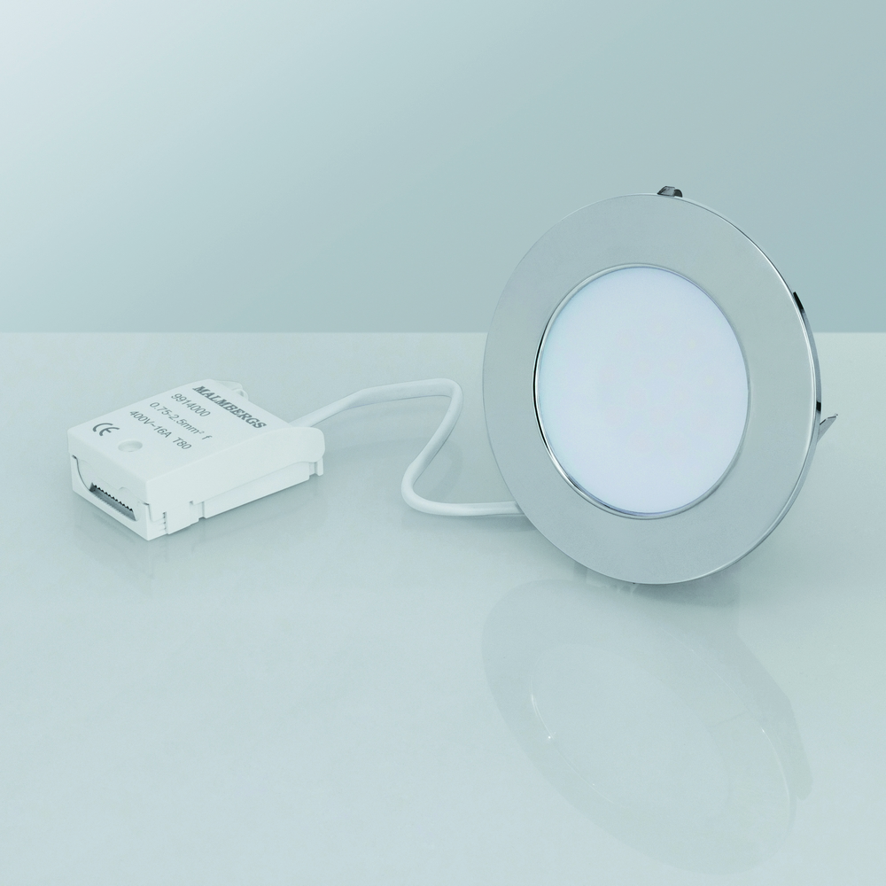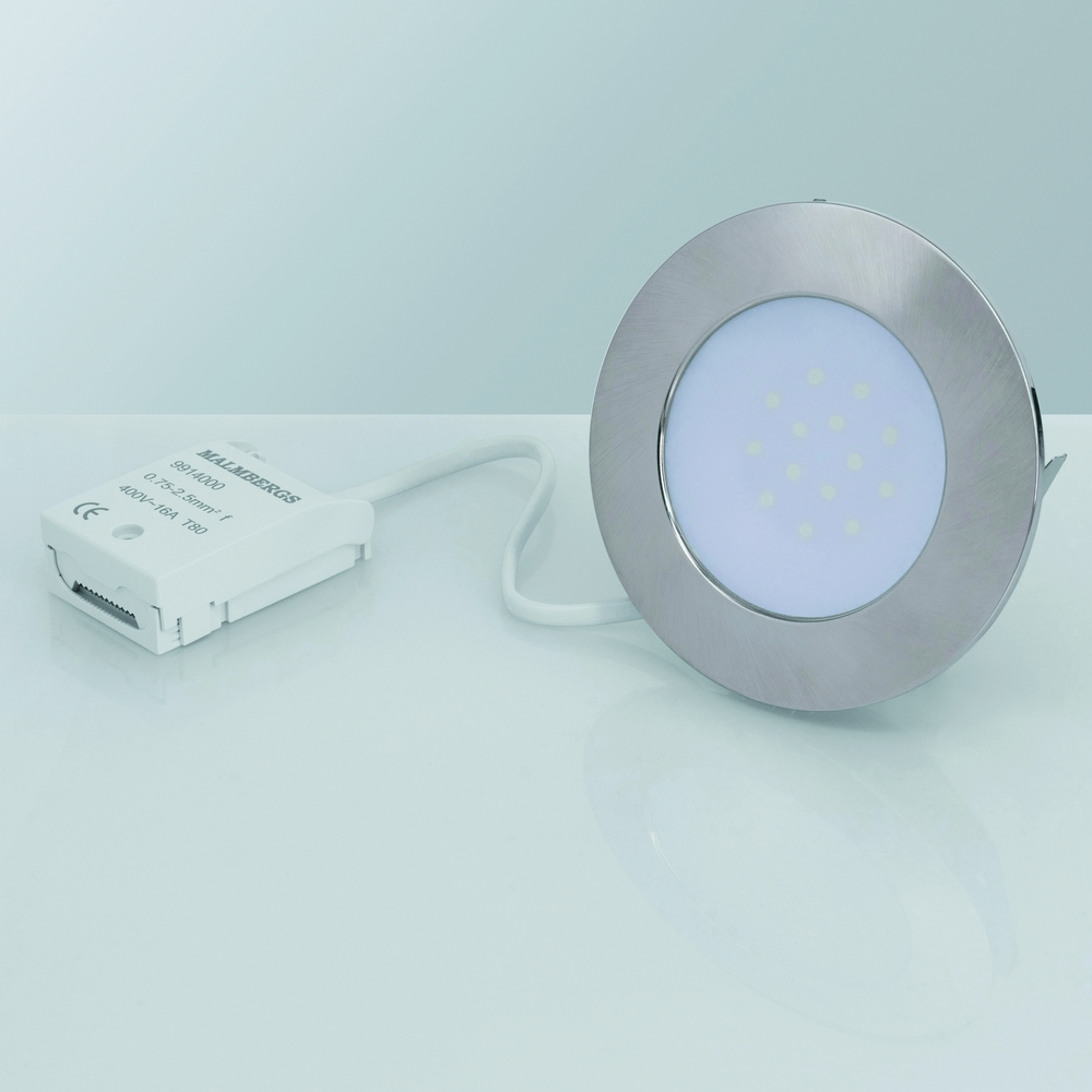 Downlight Malmbergs MD-232 är en armatur där du slipper drivdon för smidigare installation. Downlighten är anpassad för infällt montage och anslutes till snabbkopplingsplint 4x2,5 mm². Den är vidarekopplingsbar och har dragavlast för kabel eller flexslang 16 mm. Den är dessutom dimbar med bakkantsstyrd transistordimmer (RC). Inbyggnadsdjup: 21 mm (OBS! höjd kopplingsbox 23 mm).