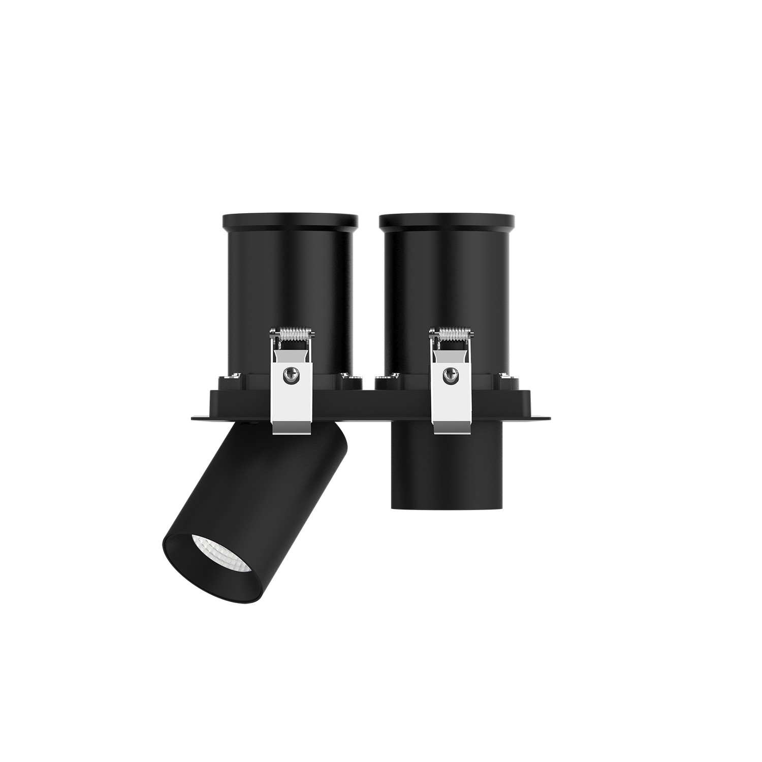 Infälld downlight i lackerad aluminium med utdragbar, ställbar armatur som gör att den funkar som spotlight. LED-chipet är placerat högt upp i armaturen för att motverka bländning. Ljuset sprids med hjälp av en reflektor. Monteras med hjälp av fjäderclips.