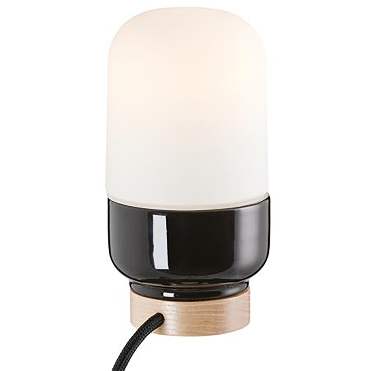Denna vackra bordslampa är smyckad med en dekorativ fot av trä (ask) som skapar fina och varma kontraster mot det strama porslinet. Den har en skärm i matt opalglas som dels bidrar till lampans eleganta look, men också till att det blir en jämn och behaglig ljusspridning. Ohm är även försedd med en dimmer, vilket ger full kontroll över hur starkt eller svagt lampan ska lysa. Den är lätt att placera och ger ett fint ljus till hemmets alla hörn.