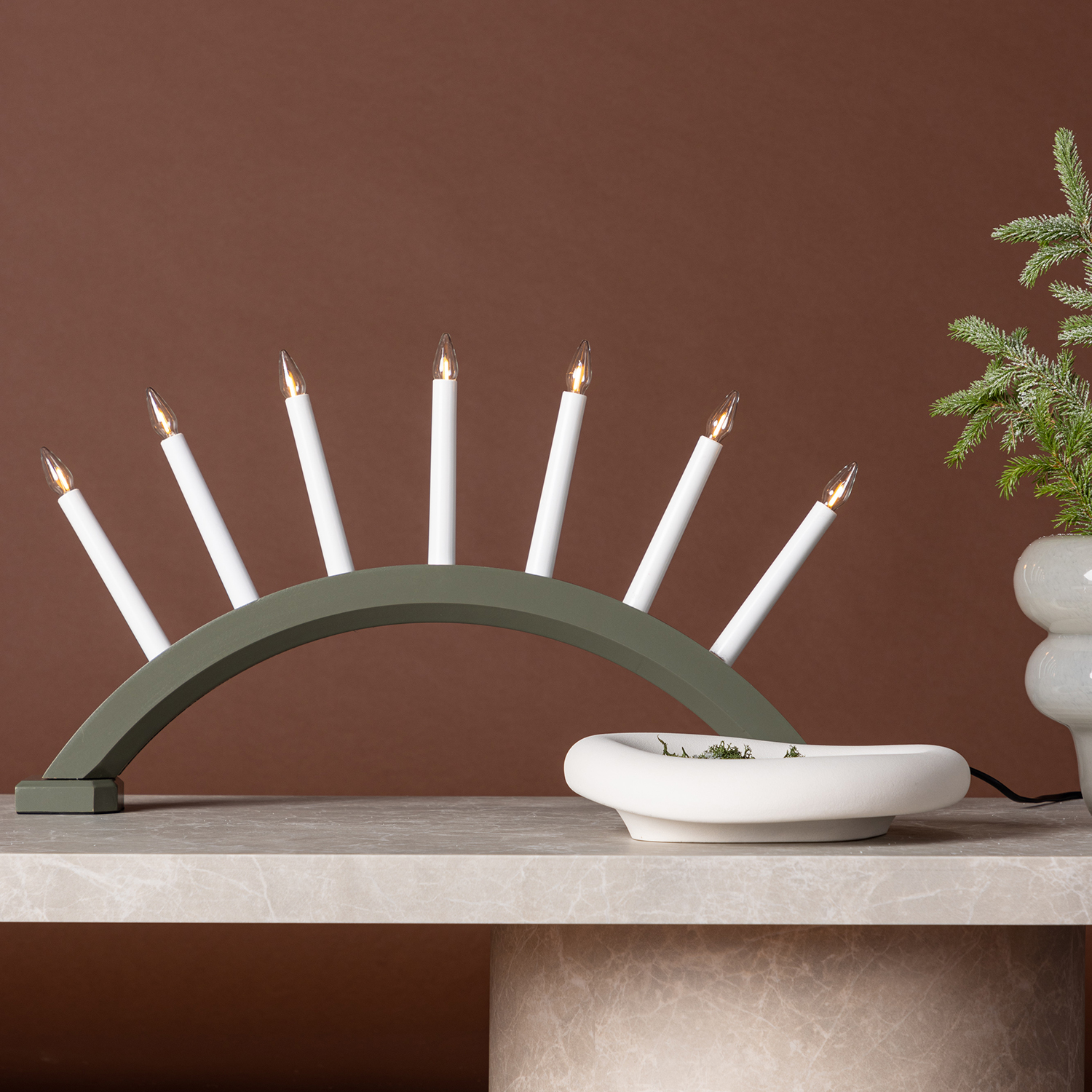 Formad likt en adventsljusstake passar den här lampan utmärkt i december när högtiden närmar sig men funkar även perfekt tidigare under hösten för att sprida ett mysigt sken i ditt hem. Den blir snabbt en sofistikerad inredningsdetalj som passar in i vilket rum som helst. Placera den på skrivbordet, i fönstret eller på nattduksbordet för att ge rummet en touch av stil och personlighet.