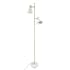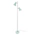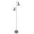 Golvlampa i metall med av/på-knapp på skärmen. Lampfoten är vinklad och skärmen kan både vridas och lutas för exakt ljussättning.