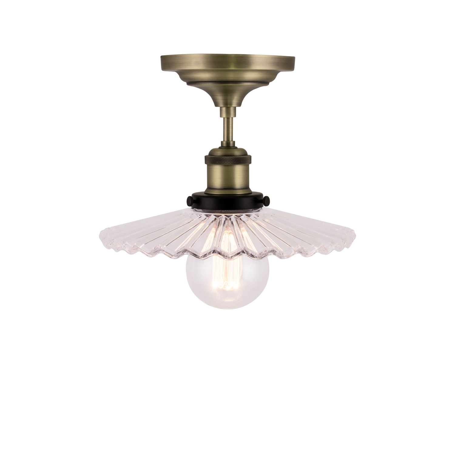 Taklampa Globen Lighting Cobbler 25 Plafond är en sekelskiftsinspirerad liten plafond i skomakarstil med veckat glas och metalldetaljer. Design: GL Design Studio.