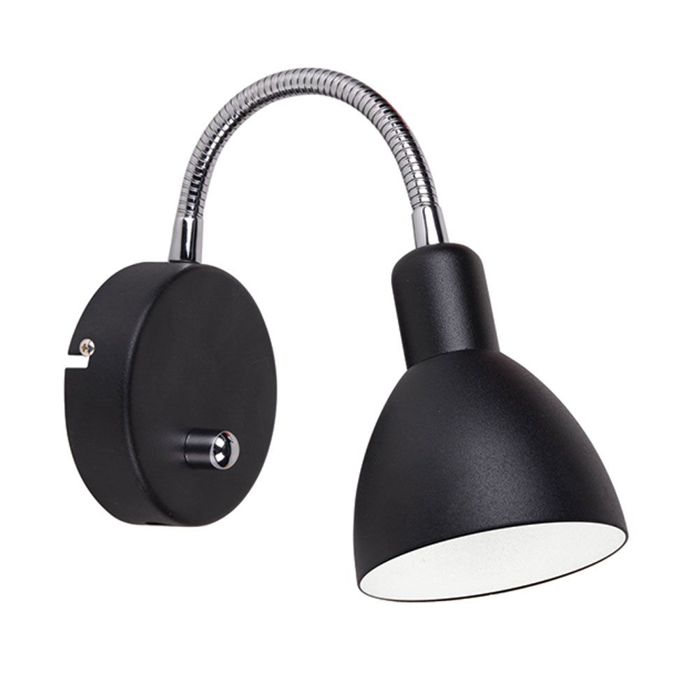Vägglampa Halo Design Denver är en liten men praktisk spotlight som passar perfekt som läslampa. Den är tillverkad av metall och har en flexibel arm som gör att du kan rikta ljuset. Insidan av skärmen är vit för att få ett fokuserat och funktionellt ljus. Denna lampa har dessutom en dimmer på väggplattan.