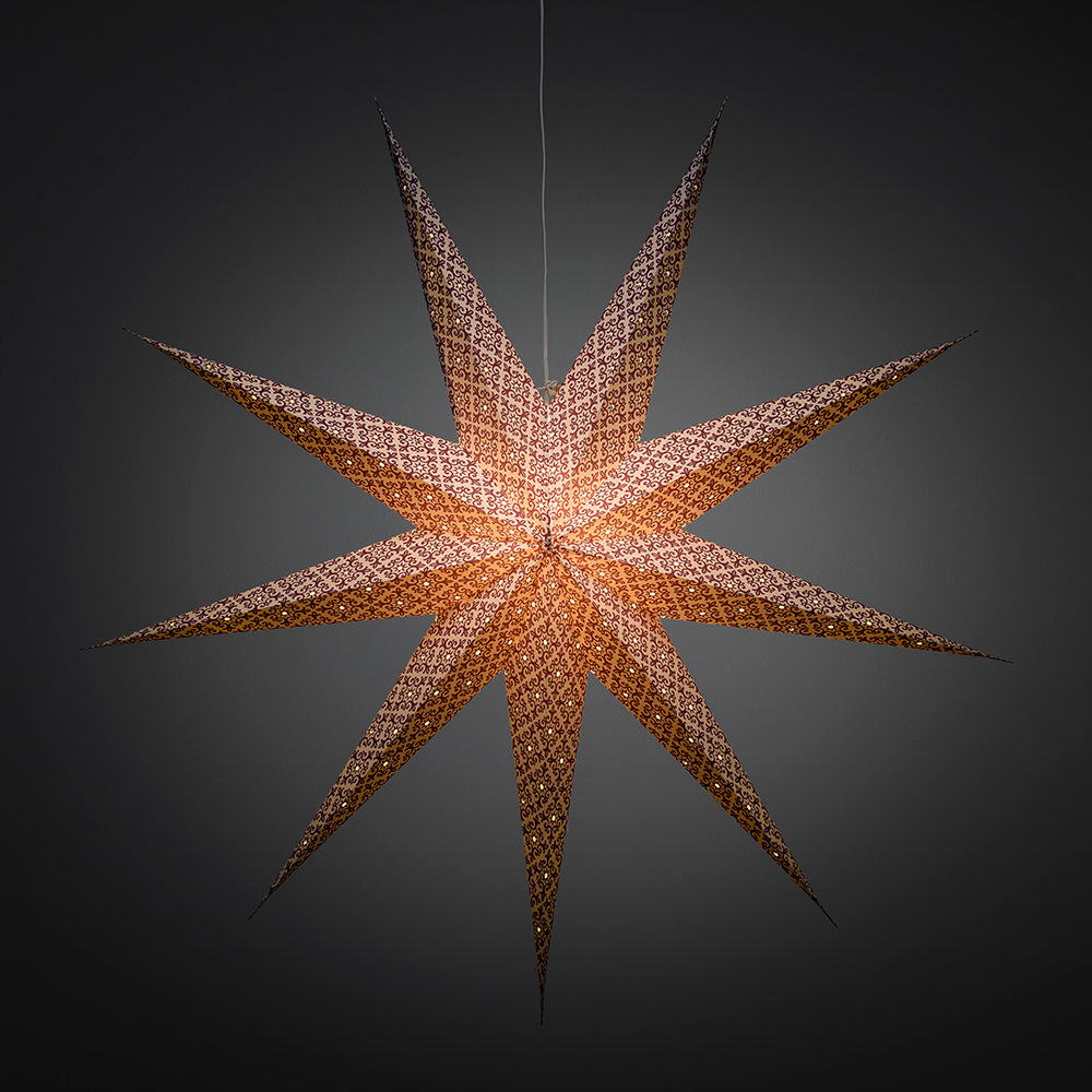 Hängande pappersstjärna från Gnosjö Konstsmide, mått 115x115cm. Inklusive sladdställ och 5 m anslutningssladd.