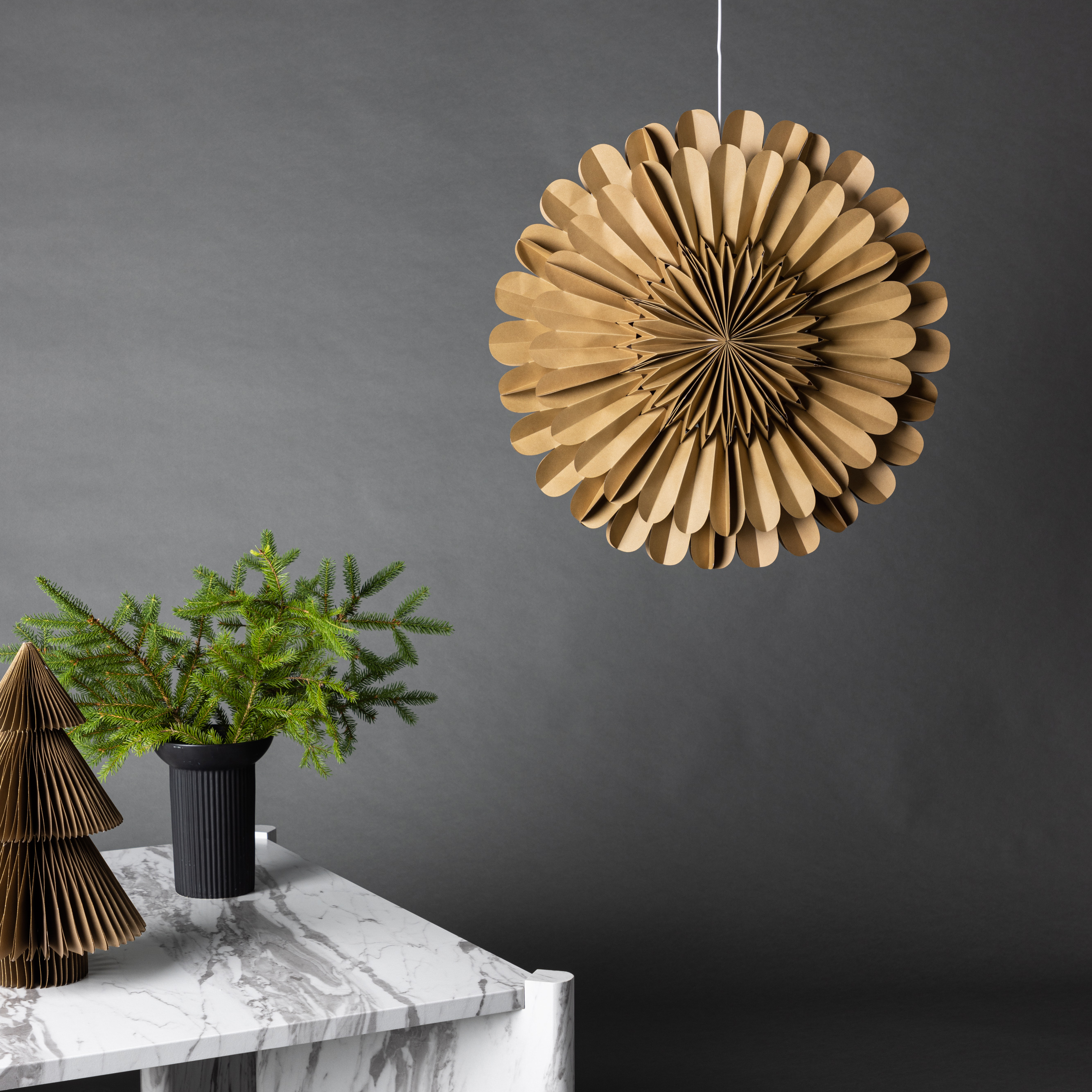 Lampan hänger i en vit sladd som diskret smälter in mot väggen och ger ett stilrent uttryck, så att fokus verkligen hamnar på den underbara stjärnan. Oavsett om det är under höstens mörka dagar eller under julens högtidliga stämning, kommer pappersstjärnan Järvsön att skapa en underbar atmosfär som får dig att känna dig omfamnad av värme och lugn.
