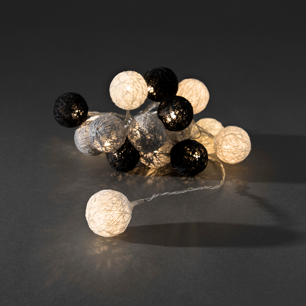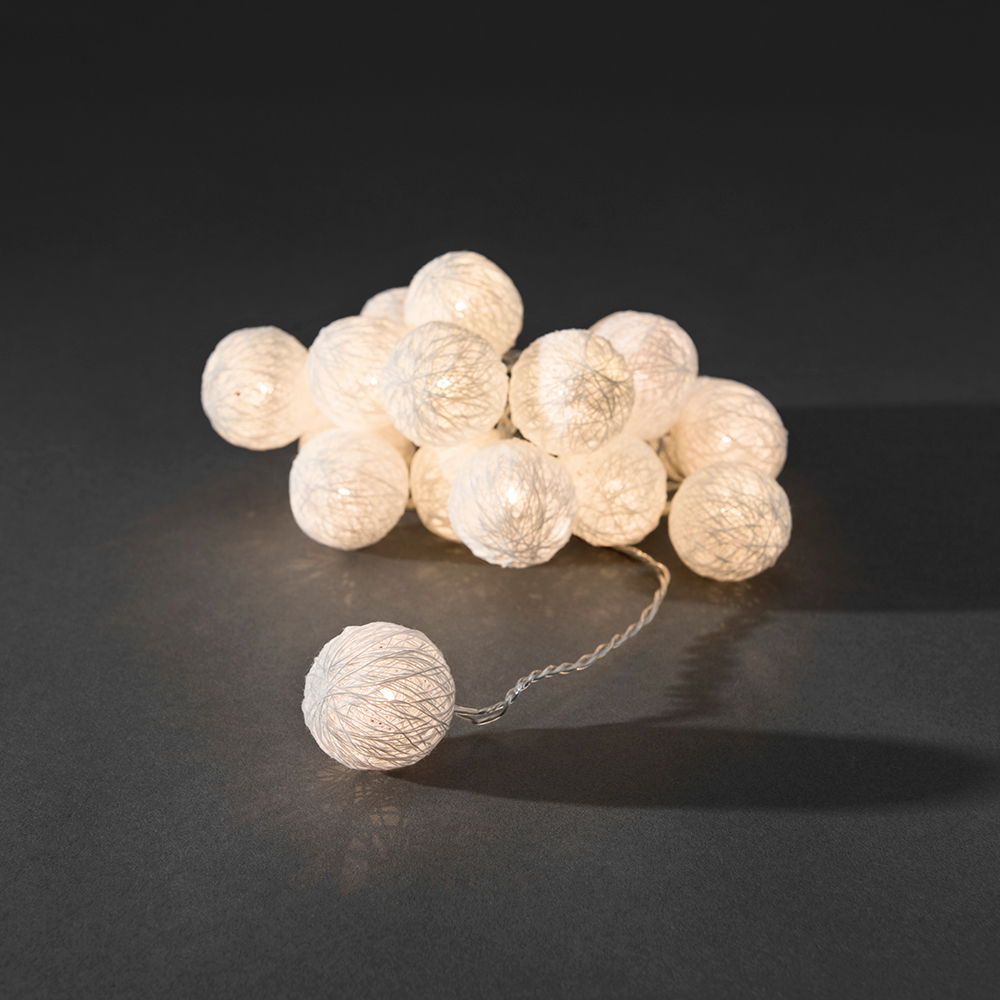 Ljusslinga från Gnosjö Konstsmide med 16 st garnbollar med LED-belysning. Slingan är 6 m lång och har en 3 m anslutningssladd till första lampan. Bollarna är 3,5x3,5 cm.