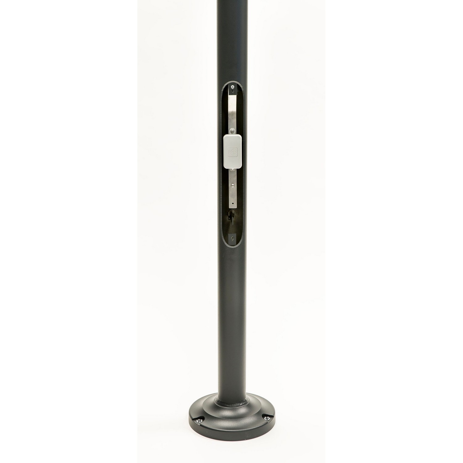 Endast stolpe tillverkad i gjuten aluminium. Teleskoperande min. 2200 mm och max. 3200 mm. Finns i två färger. Inspektionslucka ingår.