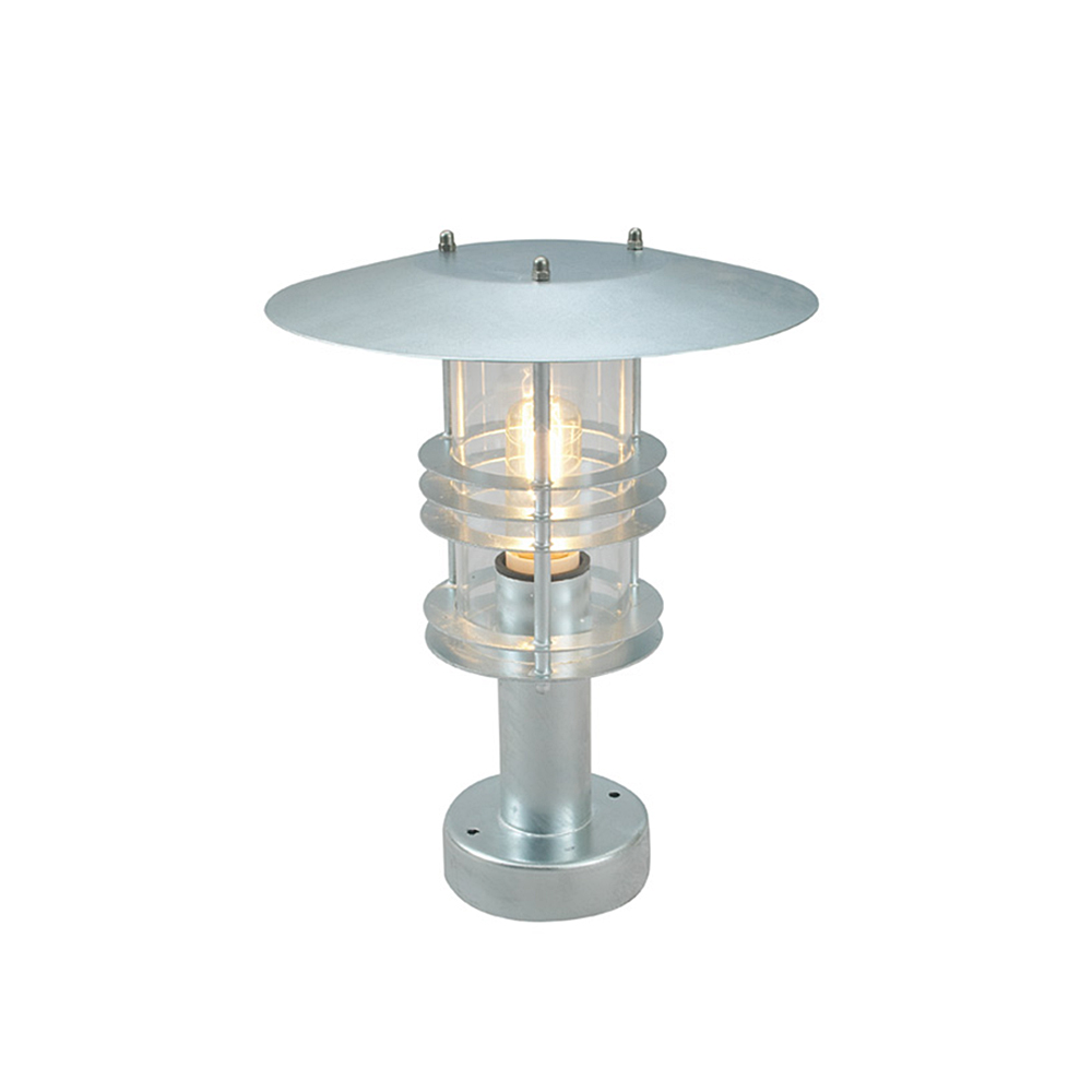Portstolpe i en hel serie av modeller. Glas i klar polykarbonat. Opalvitt polykarbonat som tillbehör. Finns i två storlekar. Finns i galvaniserad eller lackerad utförande. I serien finns både pollare, vägg och stolpmodeller.