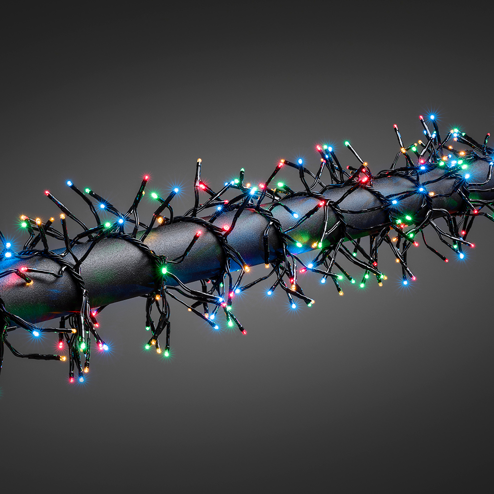 Ljusslinga cluster från Gnosjö Konstsmide med 768 st LED-lampor. Slingan är 5,8 m lång och har en anslutningssladd på 5 m till första lampan. För utomhusbruk.
