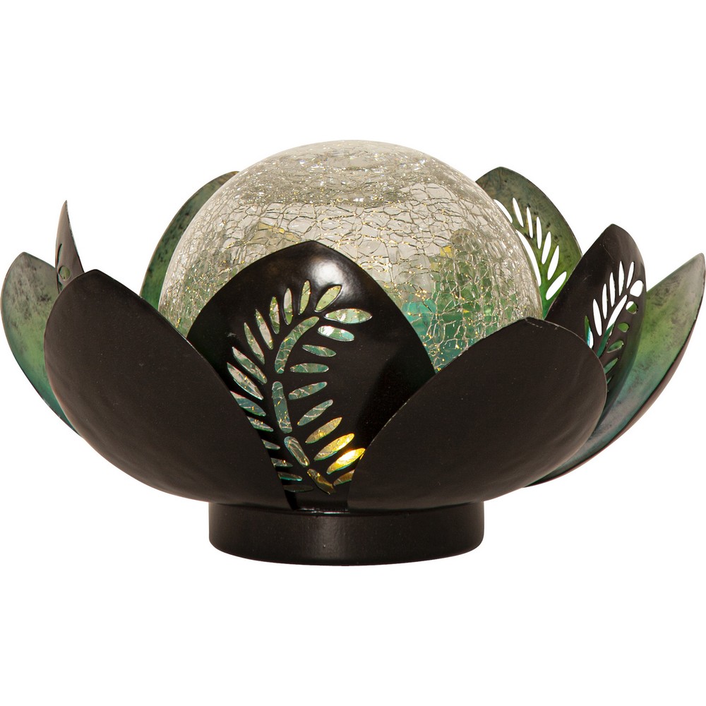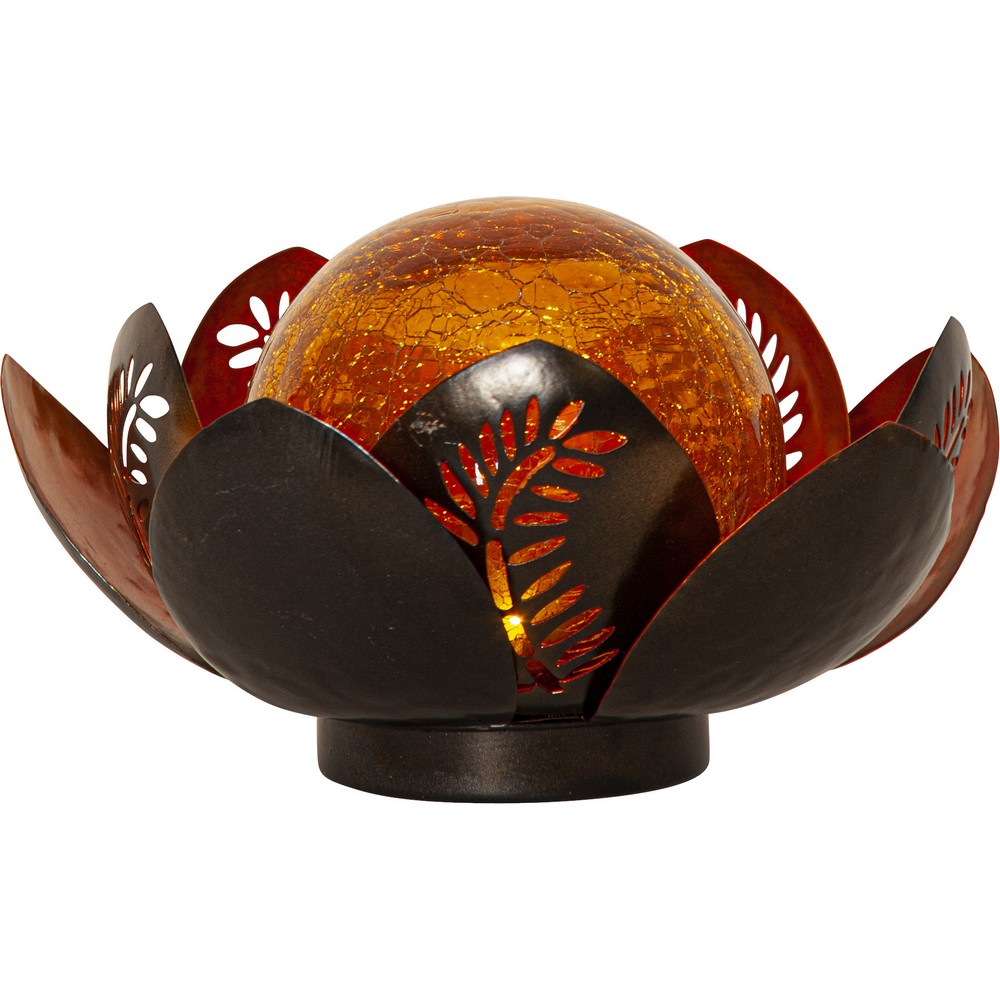 Den solcellsdrivna dekoration Lilly har kopparfärgade metall löv med en stor amberfärgad glaskula inuti. Den är ca 24 cm i diameter och 12 cm hög. Den lyser med ett guldfärgat sken genom glaskulan. Denna solcellsdekoration är fin att dekorera med i trädgården eller på en balkong. Placera belysningen där solen kan nå panelen under dagen för att få ultimat laddning till det medföljande batteriet.