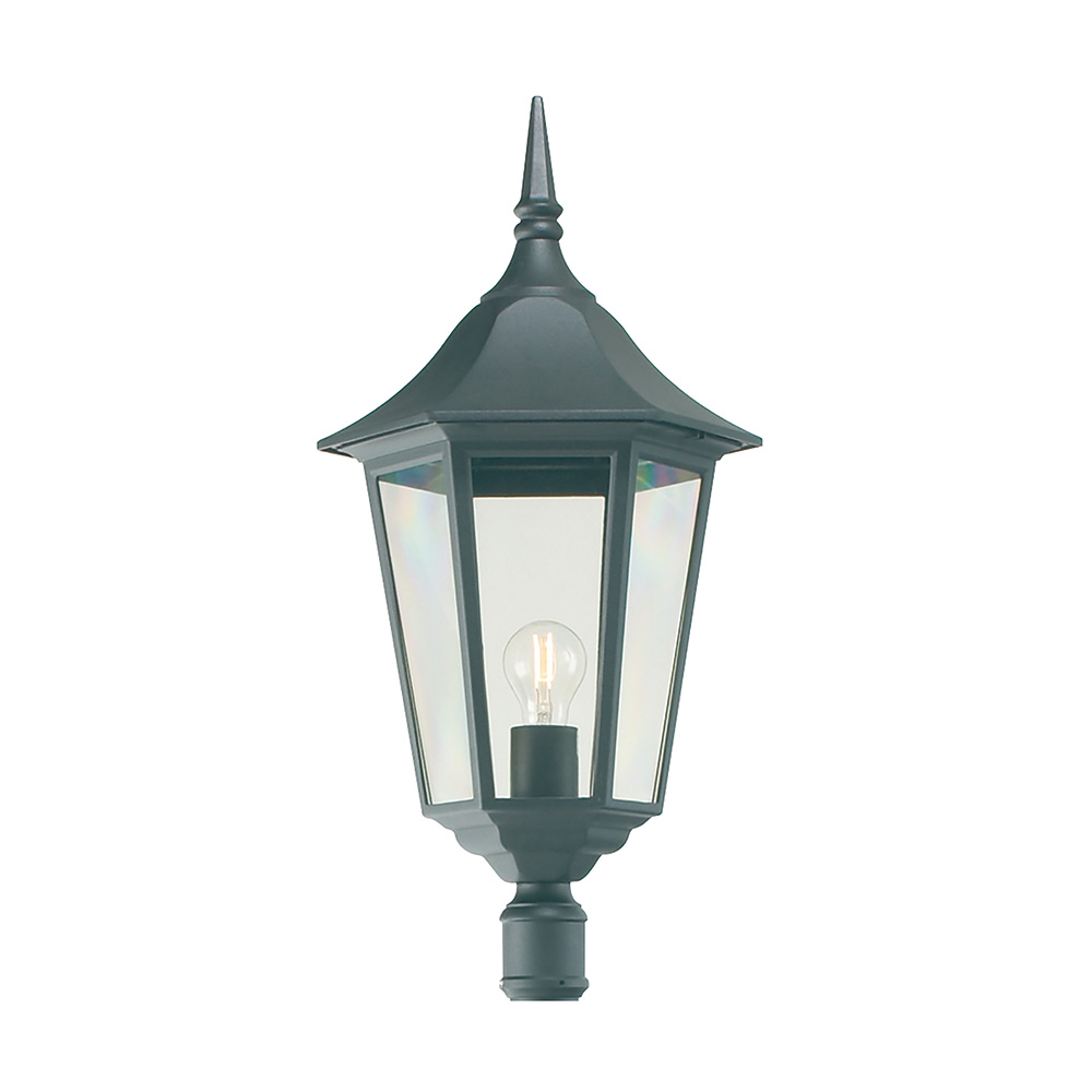 En serie av armaturer i klassisk design. Glas i klar polykarbonat. Finns i två färger. Olika alternativa fästanordningar finns som tillbehör. I serien finns det fler varianter på stolpar och väggarmaturer.