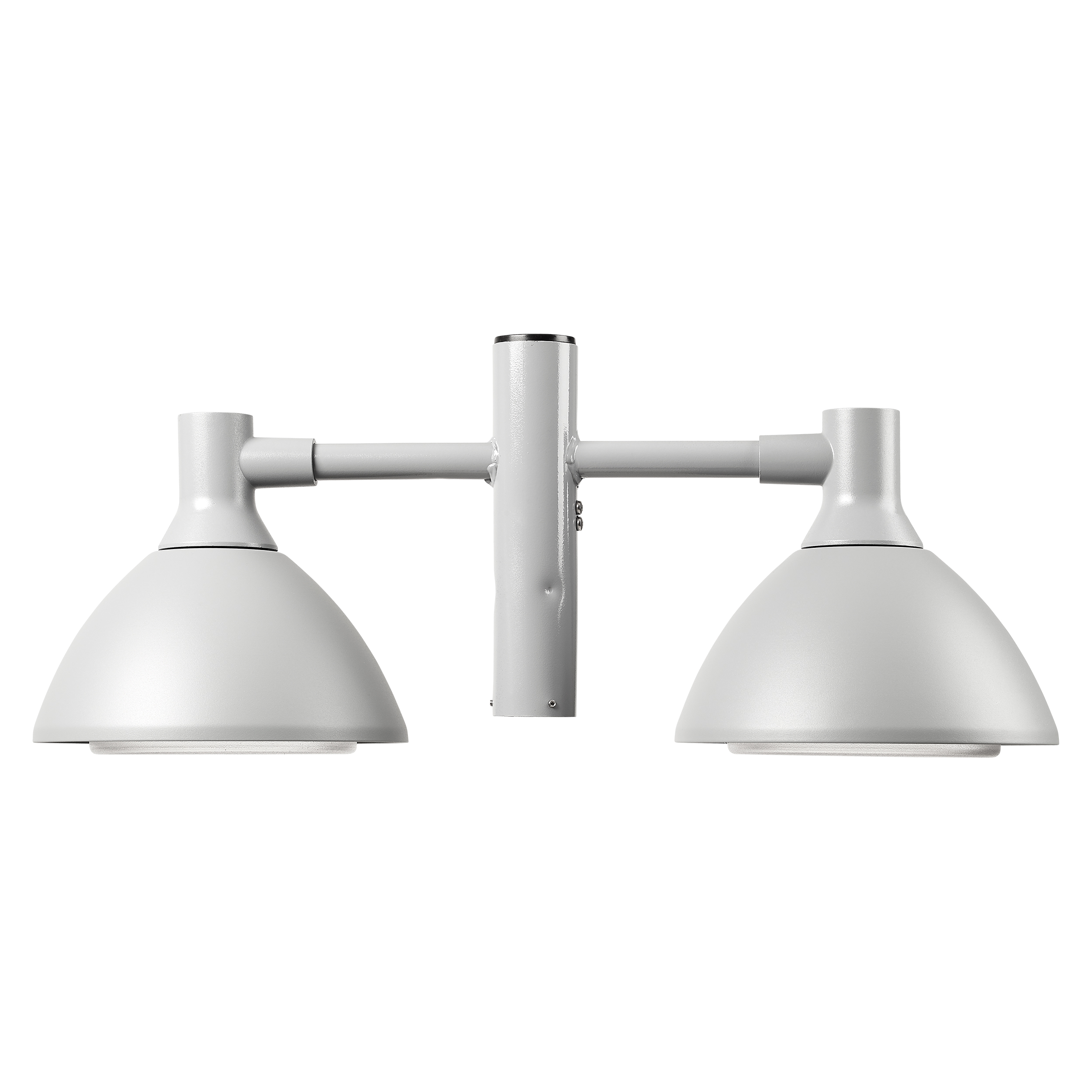Ark Mini stolparmatur med två armar från Westal som har avbländat nedljus. Anpassad för stolptopp 60 mm med kabelavlastning och snabbkopplingsplint 3x2x2,5 mm². Tillverkad i kromaterad och pulverlackerad stomme med bländskydd i PET-G. Passar för bruk både i privat och offentlig miljö.