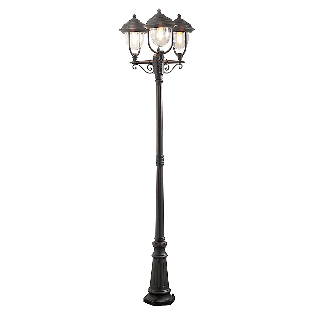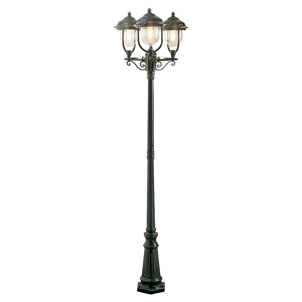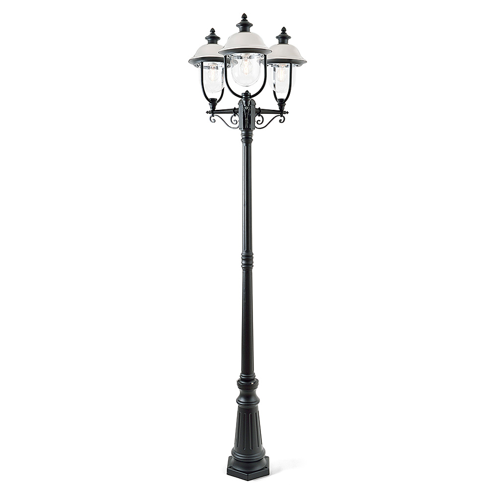 Stolplykta Gnosjö Konstsmide Parma 3-arm E27 med Stolpe är en elegant stolplykta med tre lyktor i klassiskt snitt. Lyktorna har klart akrylglas och är IP 43-klassad. Denna stolplykta är anpassad för utomhusbruk och levereras utan ljuskälla.