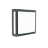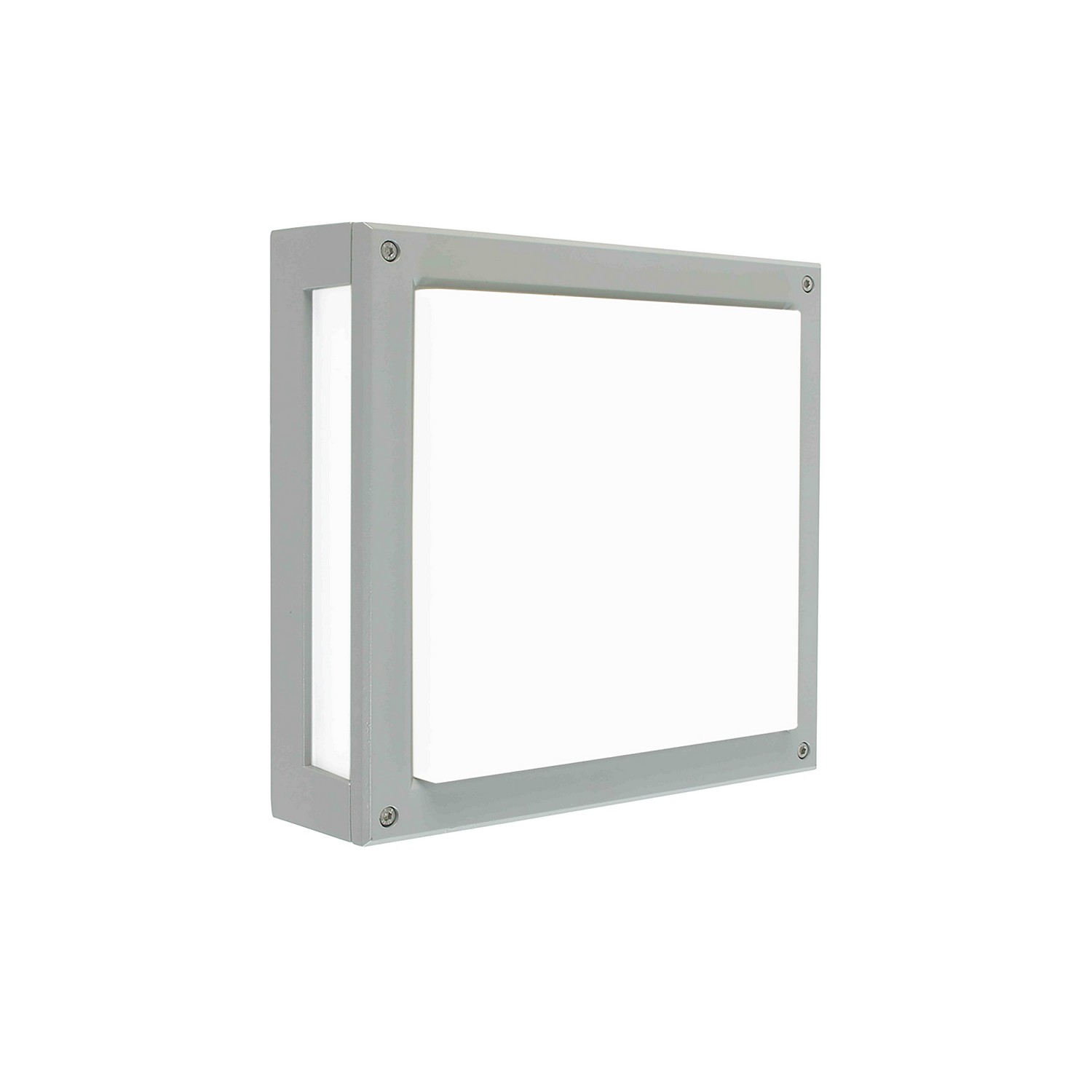 Modern väggarmatur i gjutet aluminium. Ljuskälla avskärmas med opalvit polykarbonat. Passar även för takmontage. Finns med dimning, ställbart rörelse- och skymningsrelä (typ 5040).