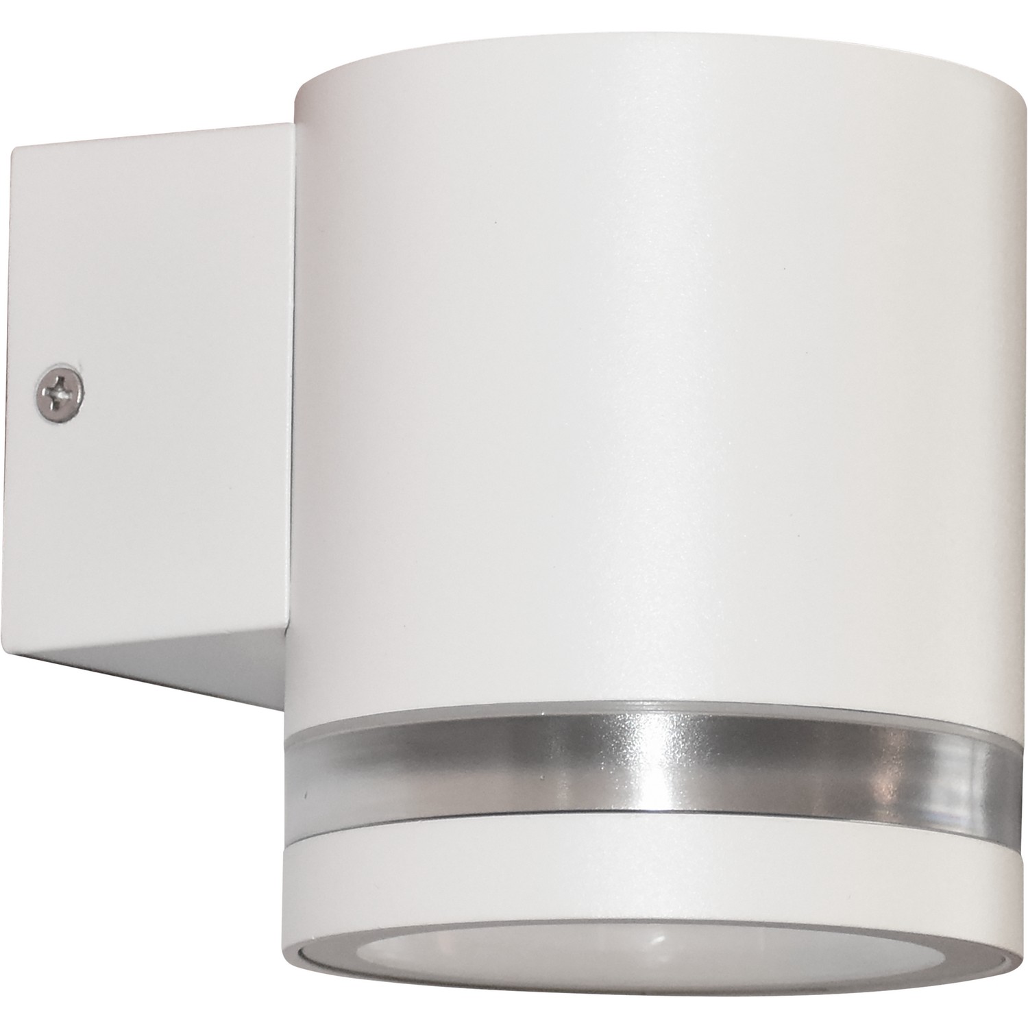 Cylinderformad fasadbelysning i elegant design tillverkad i aluminium, med täckglas. Dekorring i frostad polykarbonat. Väggarmaturen sprider ljuset nedåt och den transparanta ringen ger en extra dimension till ljuset. Belysningen passar både på privata fastigheter och i offentlig miljö.