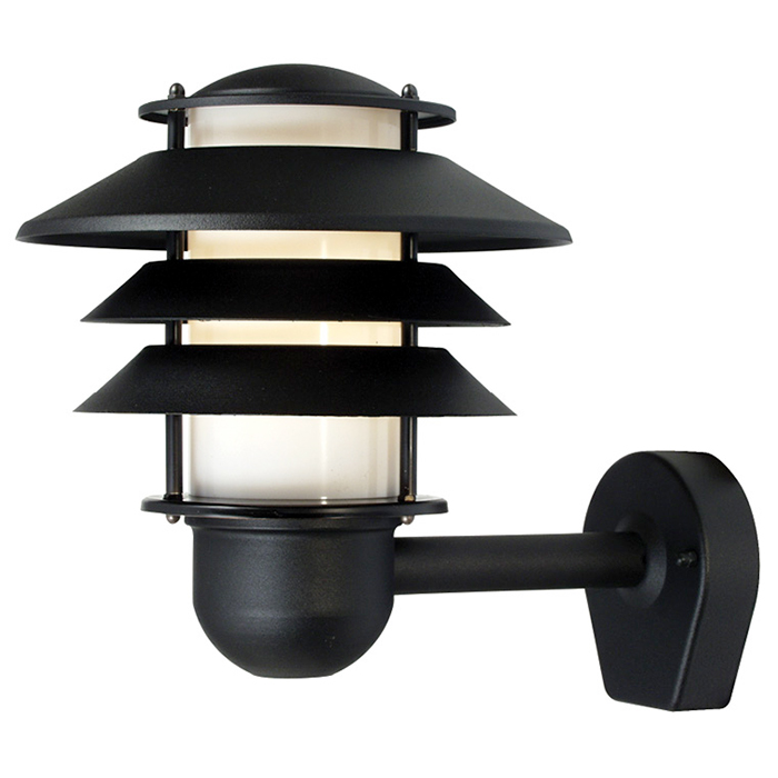 Väggarmatur med rundstrålande ljusbild. Armaturen har E27-lamphållare och är godkänd för max 75W. Bakstycket har två in- och utgångar samt snabbkopplingskopplingsplint. Avsedd för utomhusbruk (IP23) och passar för bruk både i privat och offentlig miljö.