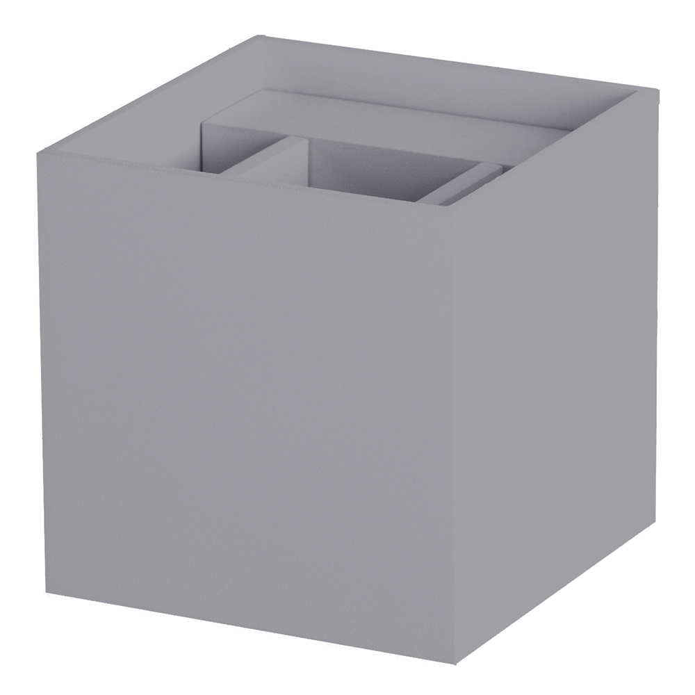 Väggarmatur med upp- och nedljus. Anodiserad och pulverlackerad stomme i aluminium. Armaturen är bestyckad med ett LED-multichip på 2x3W. Färgtemperaturen är varmvit (3000K) med en riktbar ljusbild som lyser både upp och ned.
