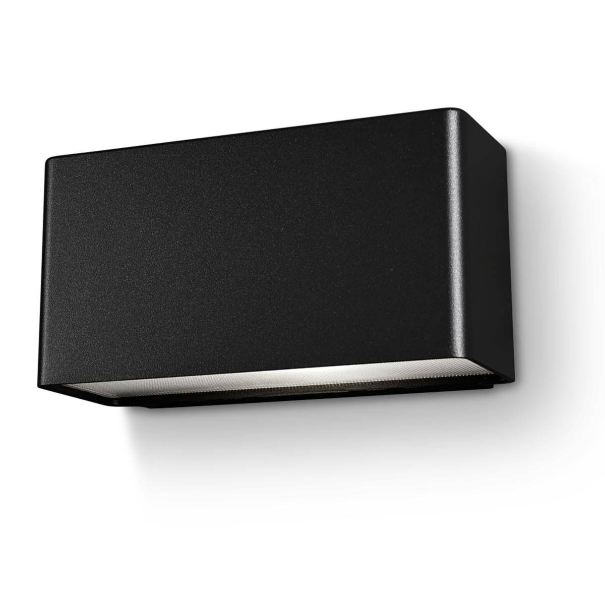 Väggarmatur med en stomme i aluminium med ett mikroprismatiskt bländskydd. Bestyckad med en GU10-sockel. Bakstycket har två in- och utgångar, samt snabbkopplingsplint för enkel vidarekoppling. Möjlighet att komma med utanpåliggande kabel. Passar för bruk både i privat och offentlig miljö.