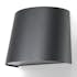 Väggarmatur med avbländat nedljus. Anodiserad och pulverlackerad stomme i aluminium, bländskydd i PET-G. Armaturen har en E27-lamphållare som är godkänd för max 15W. Bakstycket har två in- och utgångar samt snabbkopplingsplint. Avsedd för utomhusbruk (IP44) och passar för bruk både i privat och offentlig miljö.