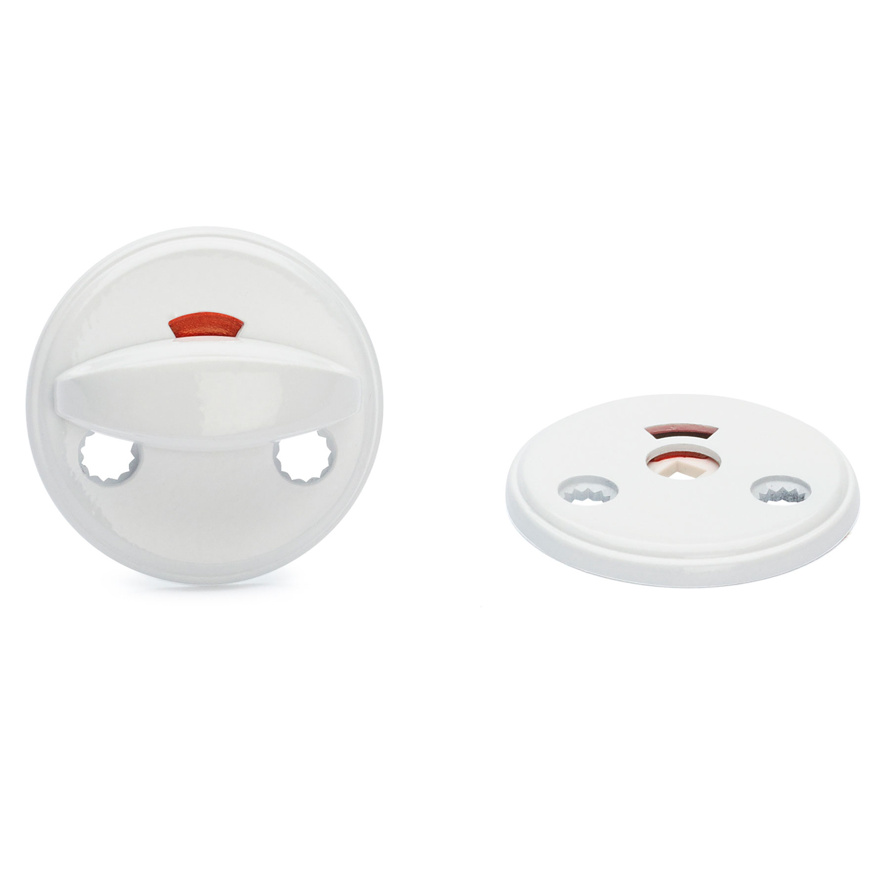 WC-beslag av zink/zamak. Levereras med skruv för genomgående fastsättning. Avsett för låshus 6414, 62014 samt 62020. Passar till dörrtjocklek 38-42 mm.