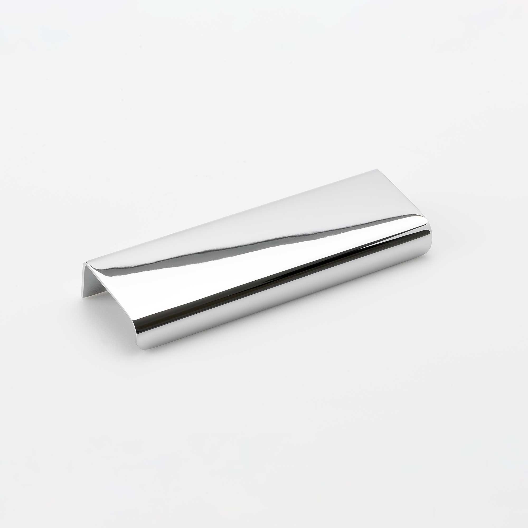 Lip är ett diskret handtag med blank finish som ligger över luckans kant och skruvas fast från insidan.