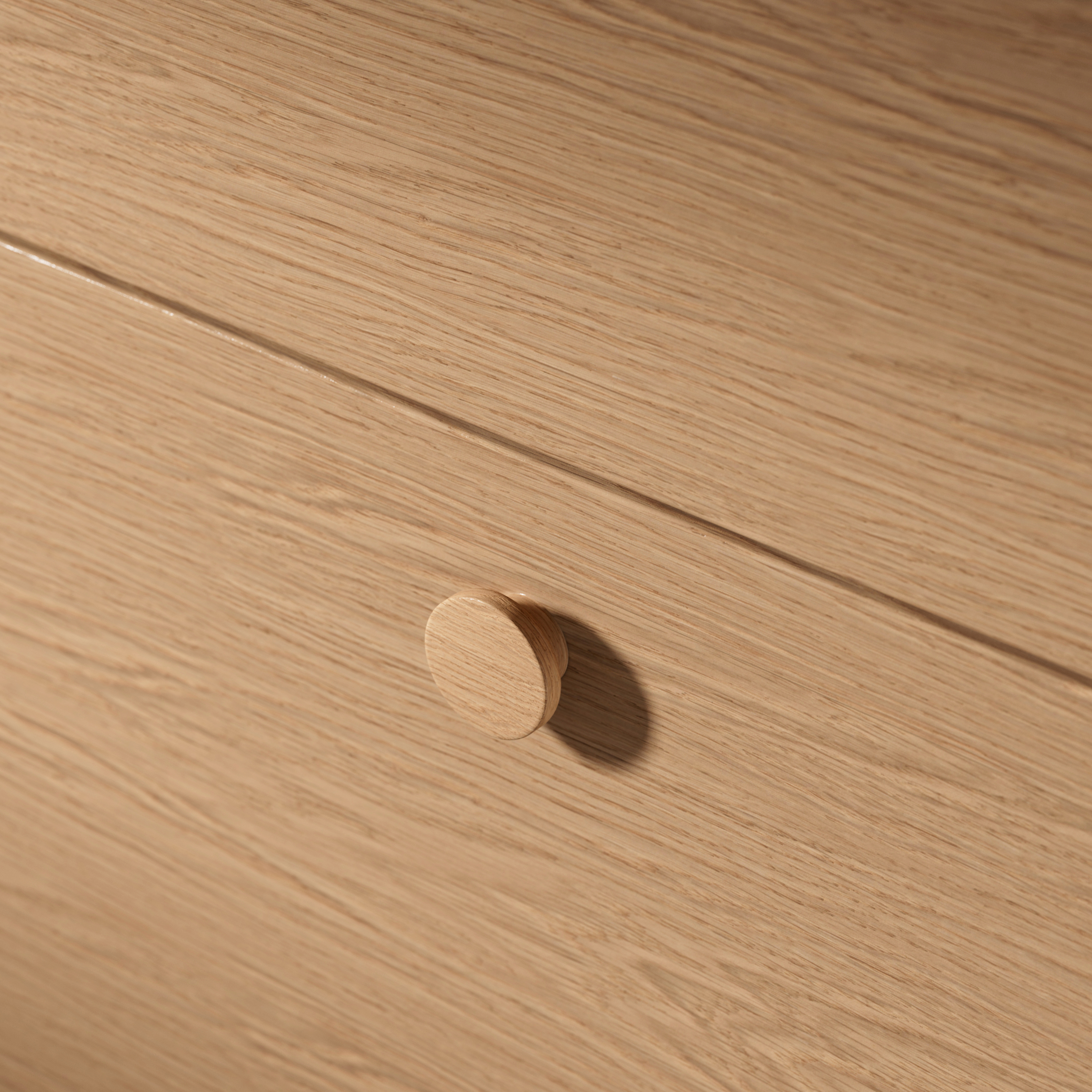 Knopp INR Dot 50 mm. Runt trähandtag i Natural Oak och Dark Oak.