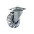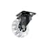 Svängbart möbelhjul av stål. Hjul Ø75 mm av transparent polyuretan (PUR). Fästplatta 60x60 mm. Maxbelastning 40 kg per hjul (beräknat värde, garanteras inte).