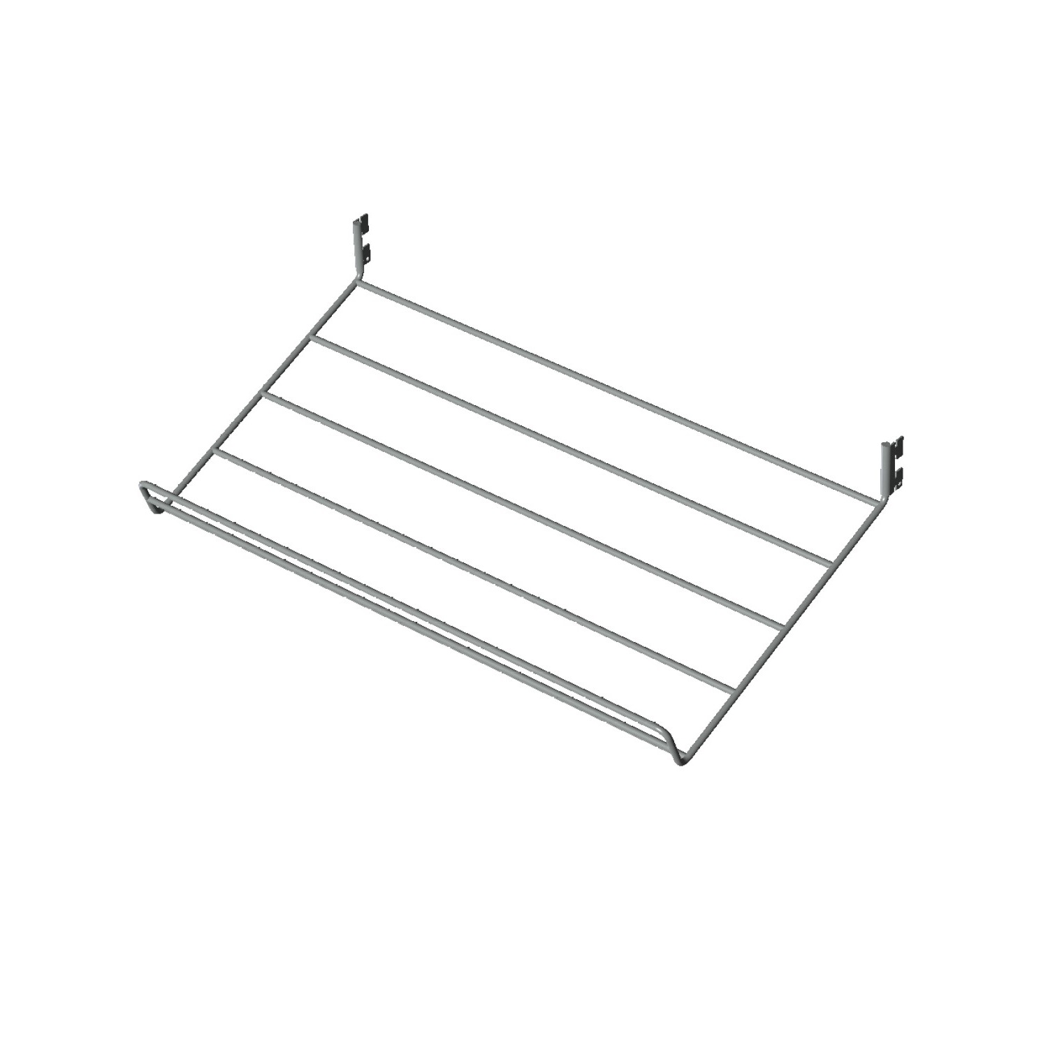 Skohylla Wide från Lundbergs är en skohylla med enkelfäste för seriemontering på skenpar eller väggfästen med centrumavstånd 600 mm.